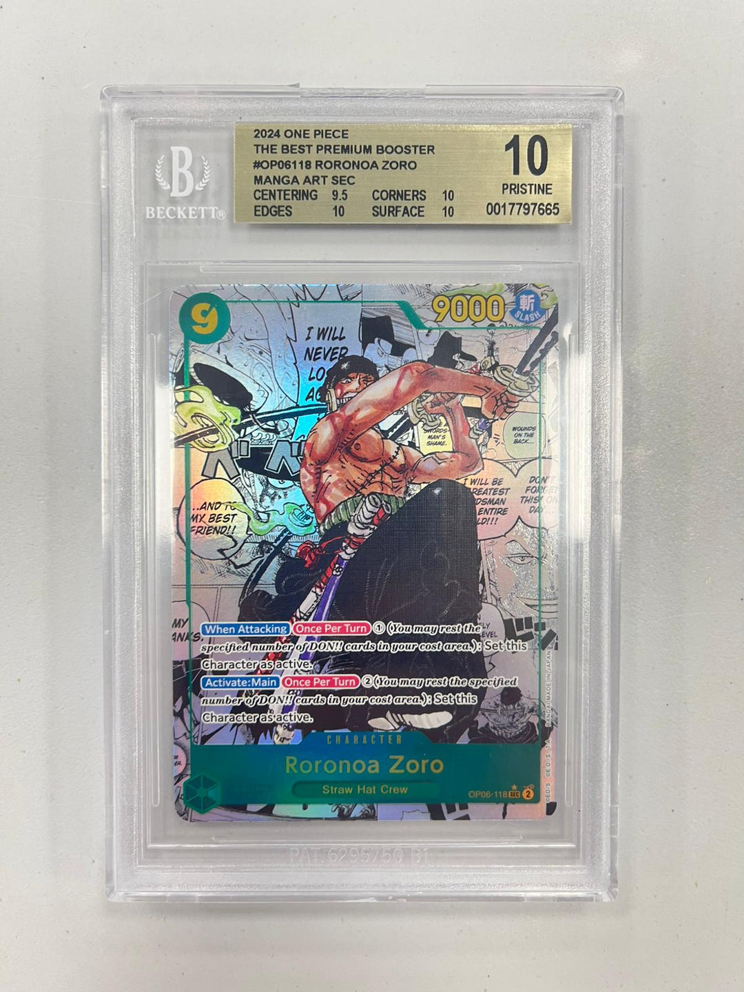 Roronoa Zoro Manga Rare PRB01/OP06-118 ENG BGS 10